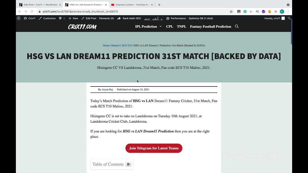 In this video you will get all the details on HSG Vs LAN Dream11 Prediction 31st Match Hisingens CC VS Landskrona Dream11 Team.