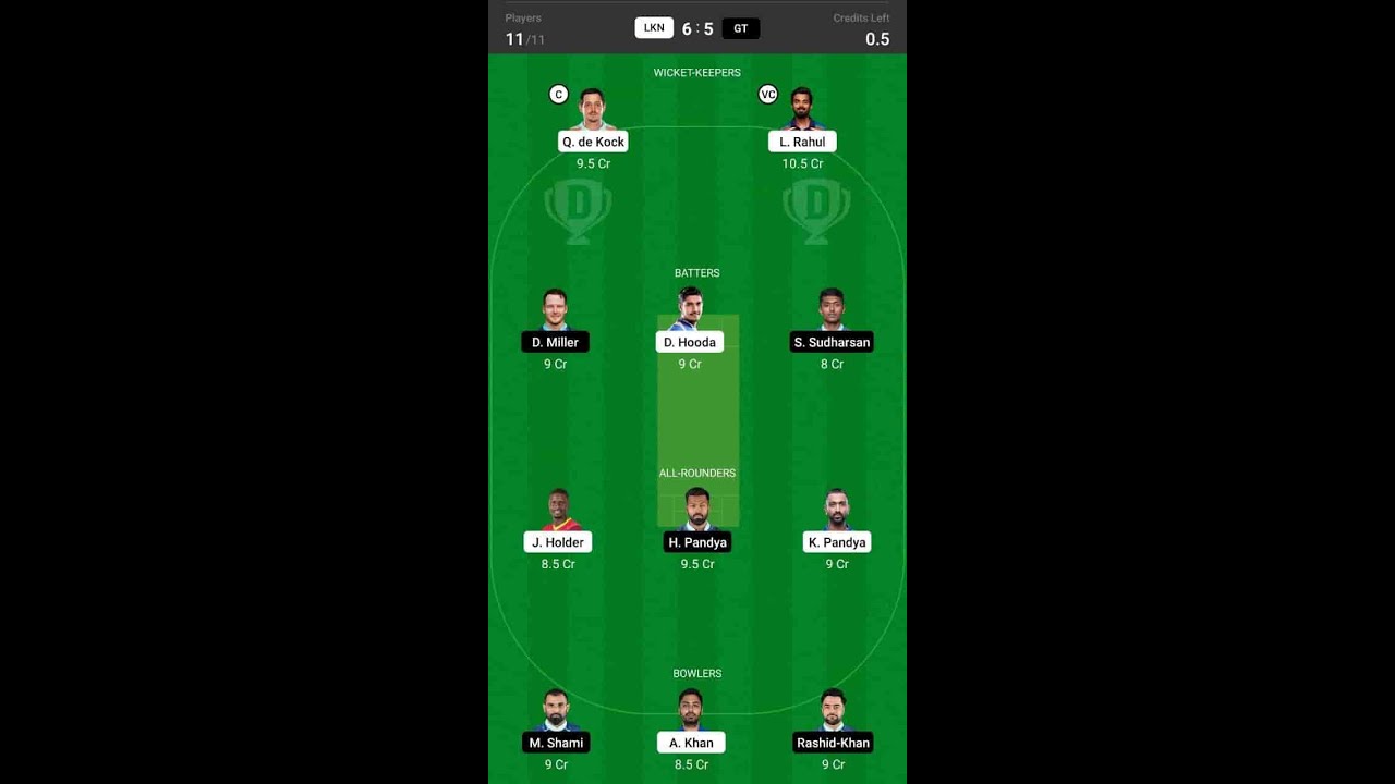 LKN vs GT Dream11 Team LKN vs GT Dream11 Prediction LSG vs GT Playing 11 57th Match IPL 2022