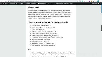 Hisingens CC Playing 11 For Today’s Match