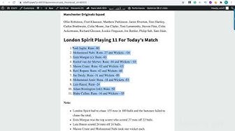 In this video, you will get all the information of MNR VS LNS DREAM11 PREDICTION 24TH MATCH Manchester Originals vs London Spirit Dream11 Team.