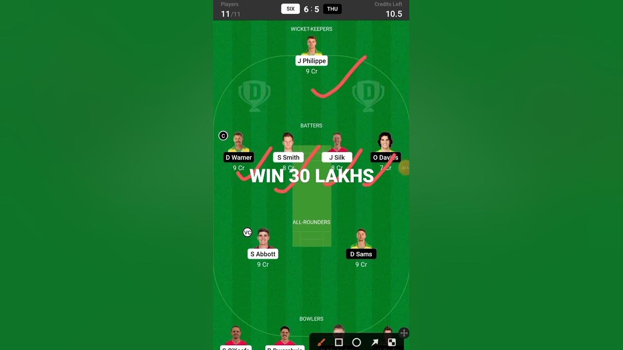 SIX vs THU GL Team 30 Lakh WIN #dream11 #bbl #shorts #sixvsthu