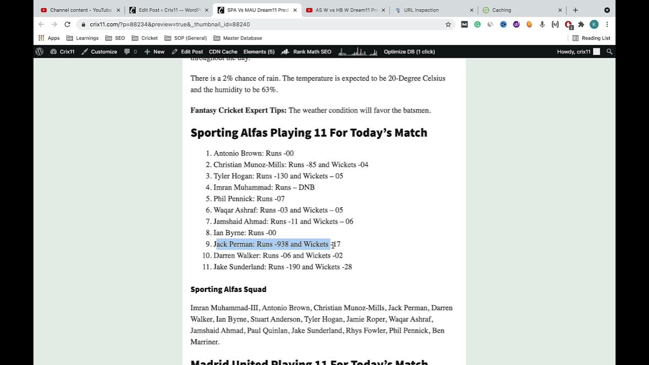Sporting Alfas Playing 11 For Today’s Match