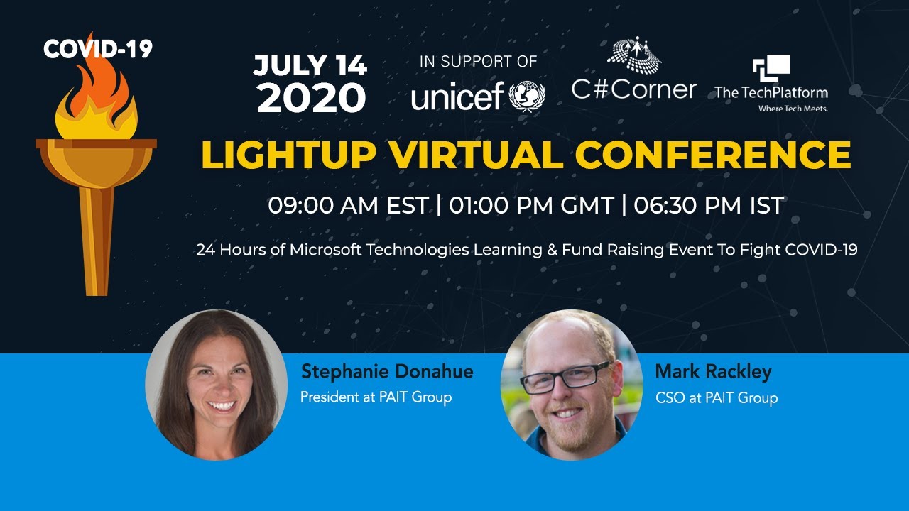 Welcome everyone to Lightup Virtual Conference! A 24-hour fundraiser Live Conference with speakers around the world speaking on Microsoft Technologies.