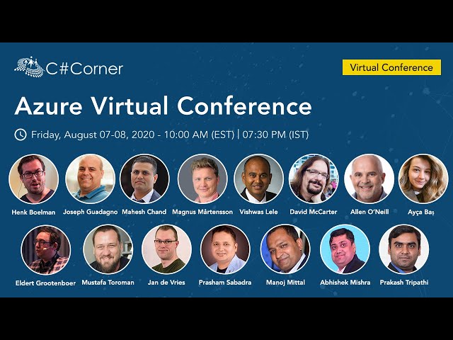 Join us on a two day Azure Virtual Conference with speakers from across the globe as they share their experience building applications with Microsoft Azure. Agenda 9:30 am - 09:45 am Mahesh Chand & Magnus Mårtensson - Welcome Note 9:45 am - 10:15 am Nishu Goel - Deploy With Azure Static Web Apps 11:00 am - 11:35 am Ayça Baş - Process Automation & Insights Across M365 Data Using Microsoft Graph & Azure 11:35 am - 12:10 pm Abhishek Mishra - Containers On Azure Platform 12:10 pm - 12:45 pm Manoj Mittal - Data Transformation Using Azure Data Factory 12:45 pm - 01:20 pm