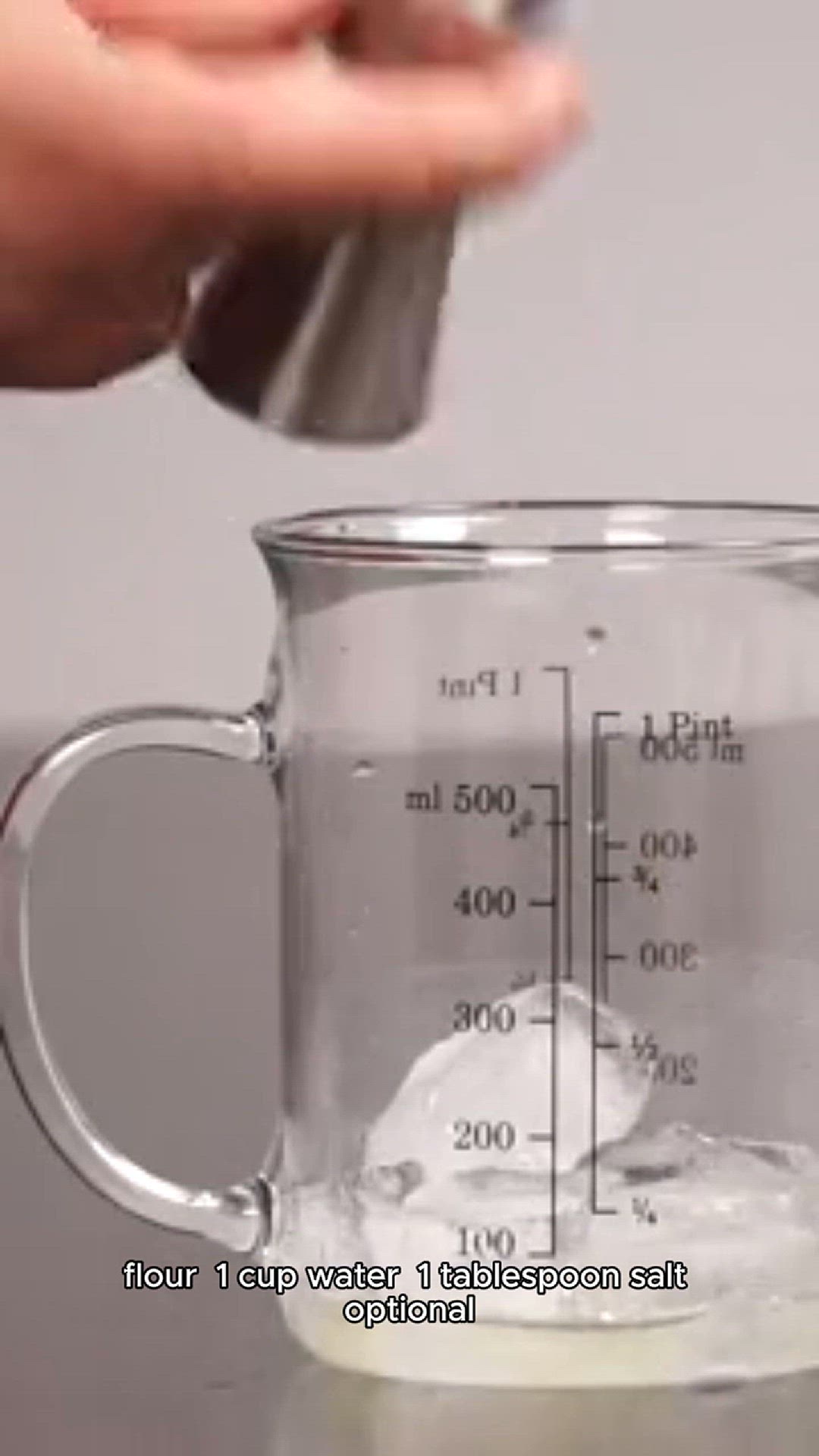 **Ingredients:** - 1 cup all-purpose flour - 1 cup water - 1 tablespoon salt (optional, helps prevent mold) - Additional water as needed for desired consistency