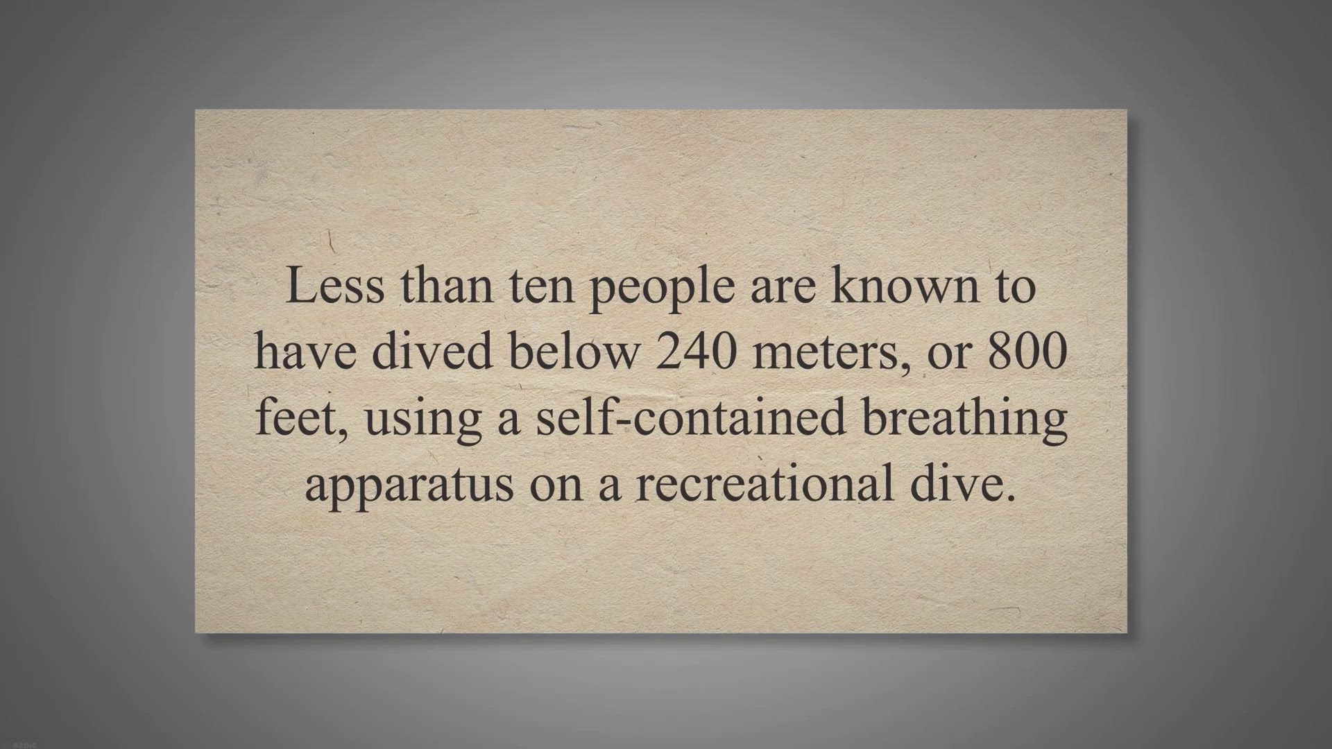Less than ten people are known to have dived below 240 meters, or 800 feet, using a self-contained breathing apparatus on a recreational dive. More…