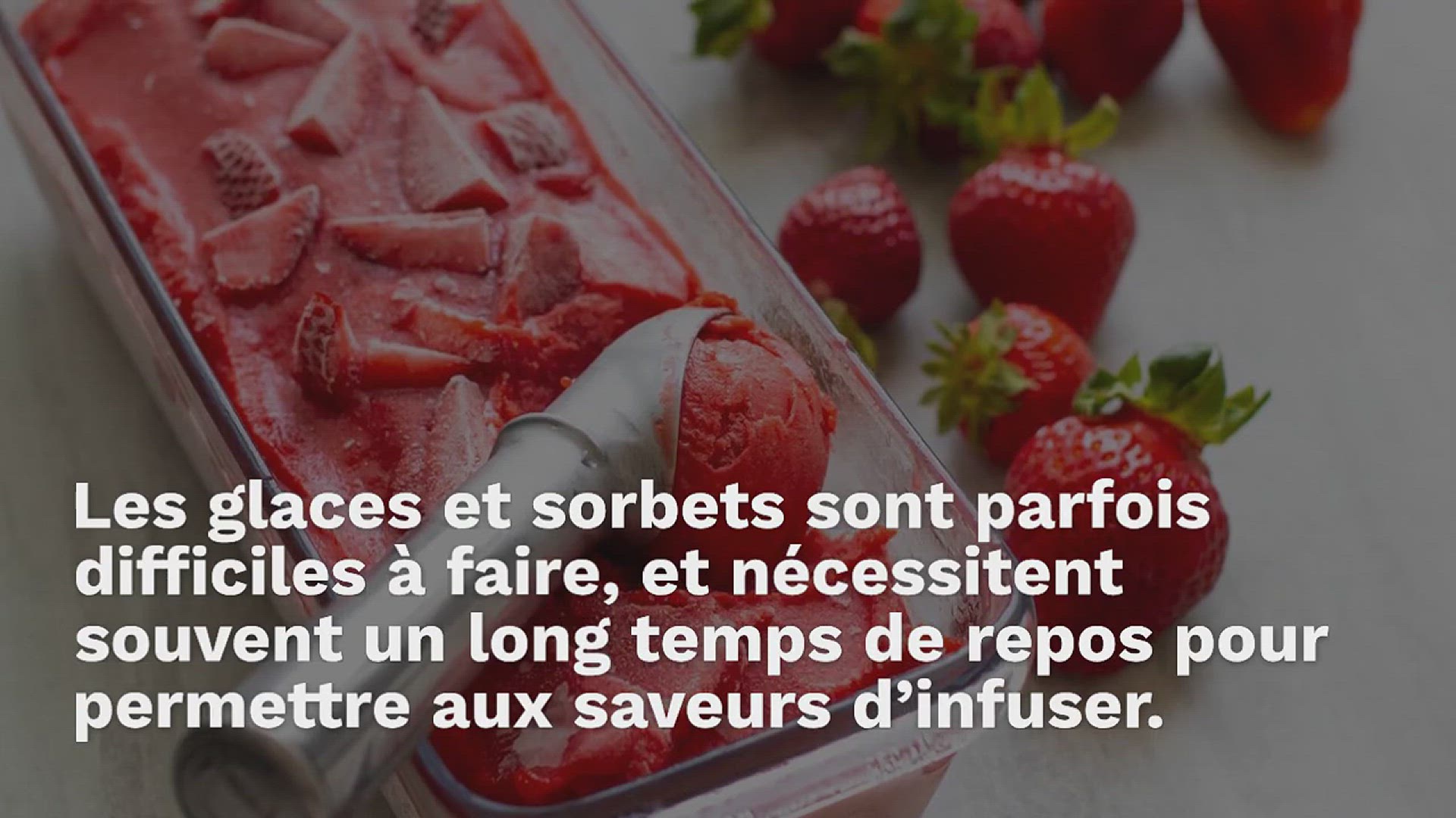 Les glaces et sorbets sont parfois difficiles à faire, et nécessitent souvent un long temps de repos pour permettre aux saveurs d’infuser. J’ai trouvé une super recette de sorbet à la fraise, qui ne nécessite que 3 ingrédients, et qui est absolument délicieuse tout en étant très simple et rapide.