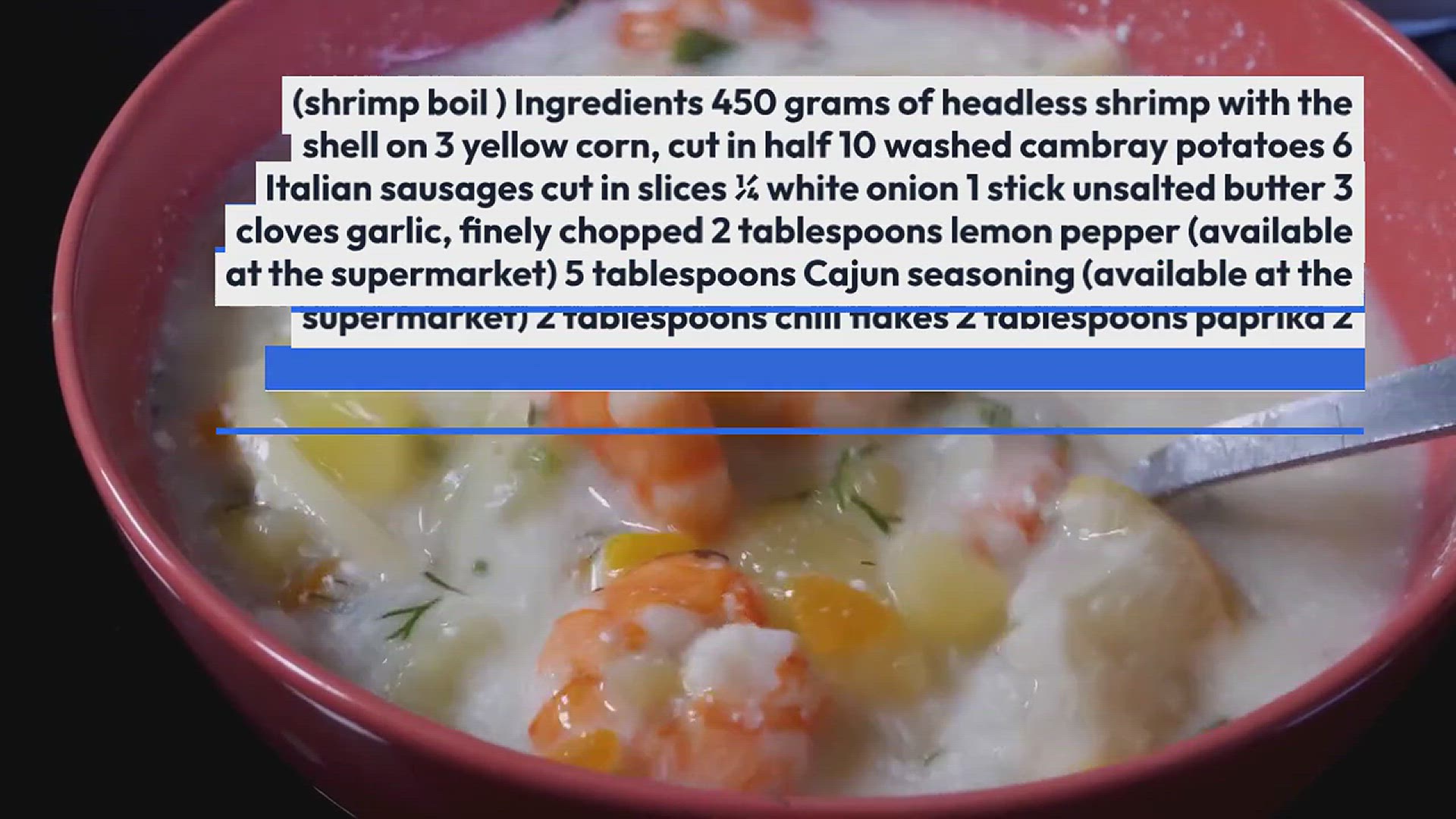 This dish is a combination of seafood with potatoes and yellow corn which are all cooked in boiling water.