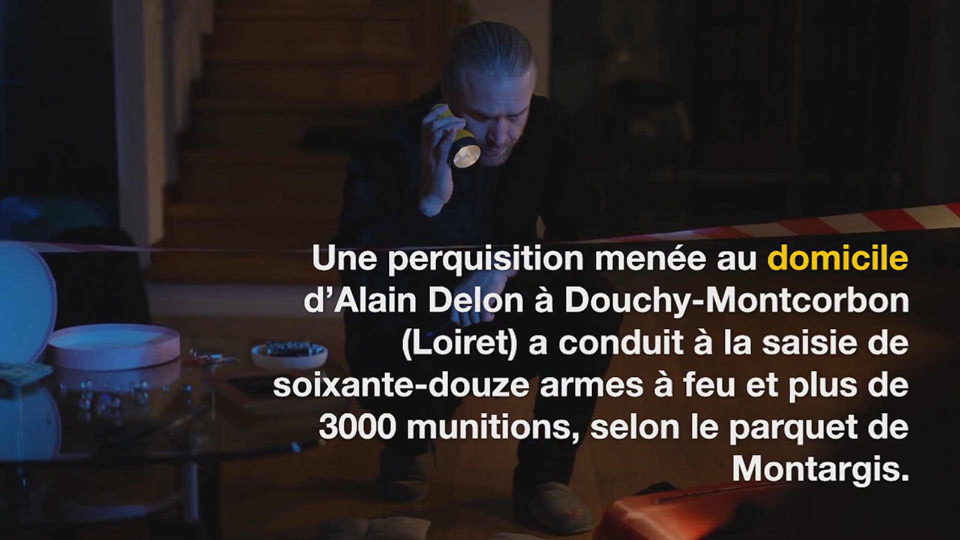 Une perquisition menée au domicile d’Alain Delon à Douchy-Montcorbon (Loiret) a conduit à la saisie de soixante-douze armes à feu et plus de 3000 munitions, selon le parquet de Montargis.