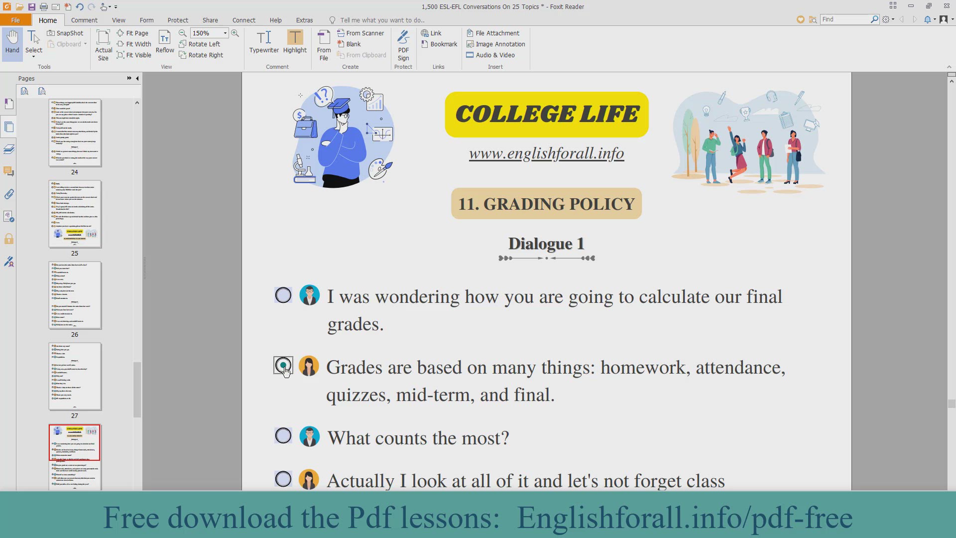 English Conversation About COLLEGE LIFE - GRADING POLICY ☑ Download Pdf Lessons: