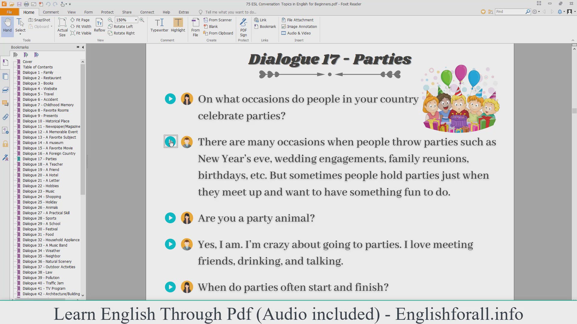 Learn English Through Pdf | English Conversation About Parties