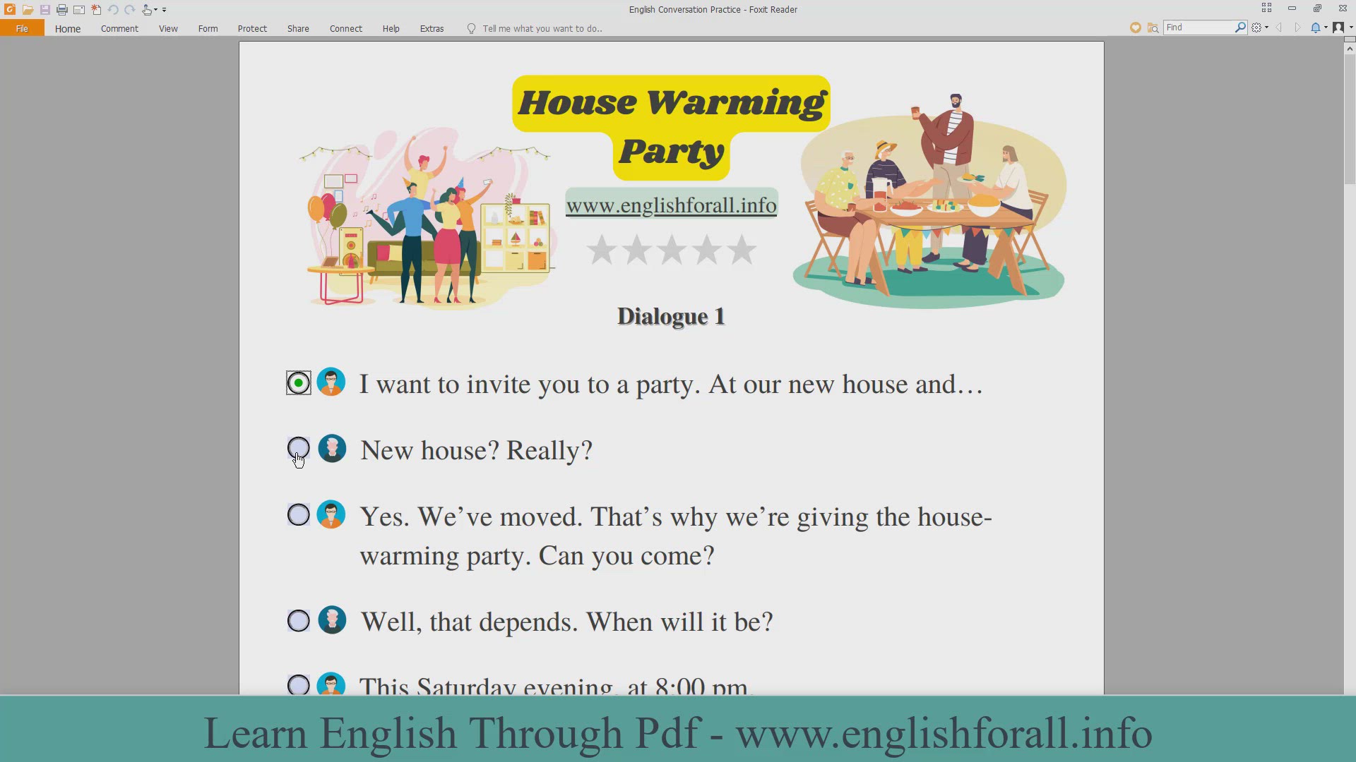 English Conversation Practice - House Warming Party ☑ Download Pdf Lessons: