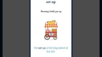 ☑ Set up meaning: build; put up ☑ set up sentences: - They set up the bowling pins. - He set up a hot dog stand at the fair. - The campers set up their tent. A: Have you used the new computer that you got last week? B: No, I haven't. It's still in the box because I don't know how to set it up! ---------------------------------------------------------------------------------------- ☑WATCH MORE: ★ Most Common Words Playlist http://bit.ly/3mTYBJD ★English Vocabulary Playlist: https://bit.ly/2TdcwPs ★Color Vocabulary: https://youtu.be/UgcdV6Oesoc ★Animal Vocabulary: https://youtu.be/oUrUN0BJUN8 ★Body Movement Verbs: https://youtu.be/cN_82aRMY44 ★English Vocabulary Playlist: https://bit.ly/2TdcwPs ★Vehicle Vocabulary: https://youtu.be/pYrxcgB3plc ---------------------------------------------------------------------------------------- OUR SOCIAL MEDIA: Pinterest: https://www.pinterest.com/englishforall101/ Facebook: https://www.facebook.com/englishforall.info/