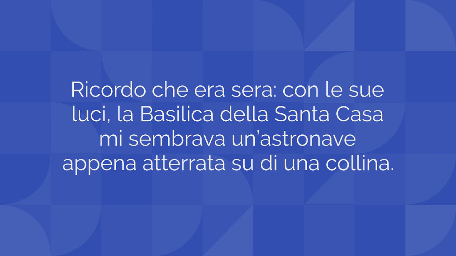 Ho visto per la prima volta Loreto mentre percorrevo la statale che da Ancona conduce verso sud, in direzione di Civitanova Marche. Ricordo che era sera: con le sue luci, la Basilica della Santa Casa mi sembrava un’astronave appena atterrata su di una collina.