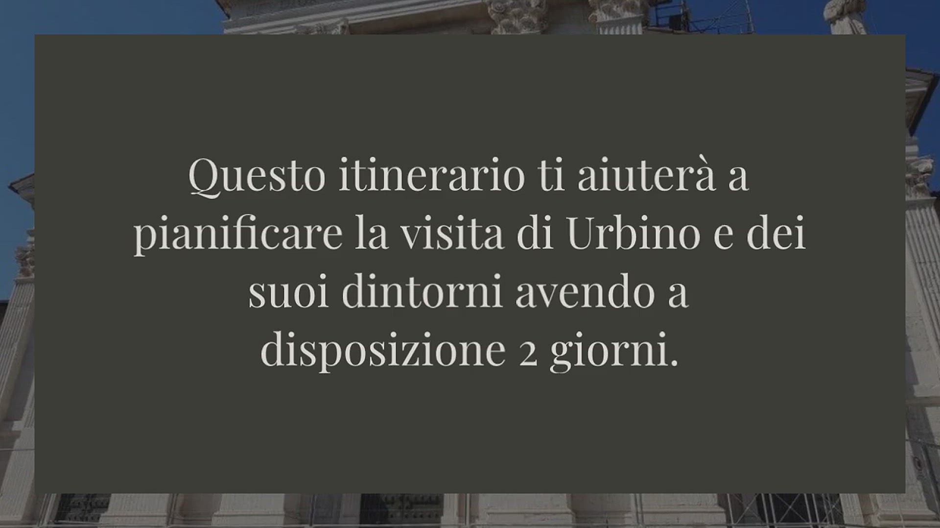 Questo itinerario ti aiuterà a pianificare la visita di Urbino e dei suoi dintorni avendo a disposizione 2 giorni. Sono stato molte volte a Urbino (Chiara ed io abitiamo in un piccolo borgo vicino ad Ancona, in un’ora siamo qui), e ti posso assicurare che un giorno è più che sufficiente per visitare il centro, per cui la seconda giornata puoi dedicarla ai borghi più belli presenti nelle immediate vicinanze.
