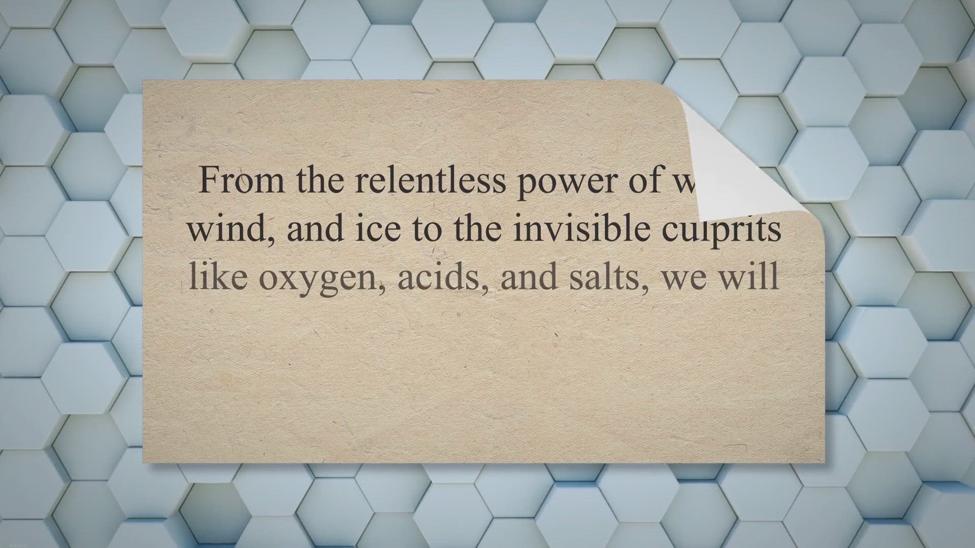 Discover the awe-inspiring world of weathering agents in this captivating video! Join us as we delve into the forces of nature that shape our planet. From the unstoppable power of water, wind, and ice to the hidden culprits of oxygen, acids, and salts, you'll be amazed by the relentless impact they have on our environment. But that's not all – prepare to be surprised by the unexpected role that living organisms play in weathering. Get ready for a mind-blowing journey through the fascinating world of weathering agents. Don't miss out – watch now!