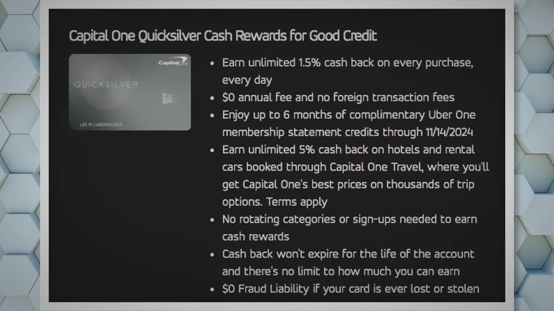 Number 1. Capital One Quicksilver, Cash Rewards for Good Credit. Earn unlimited 1.5% cash back on every purchase, every day.