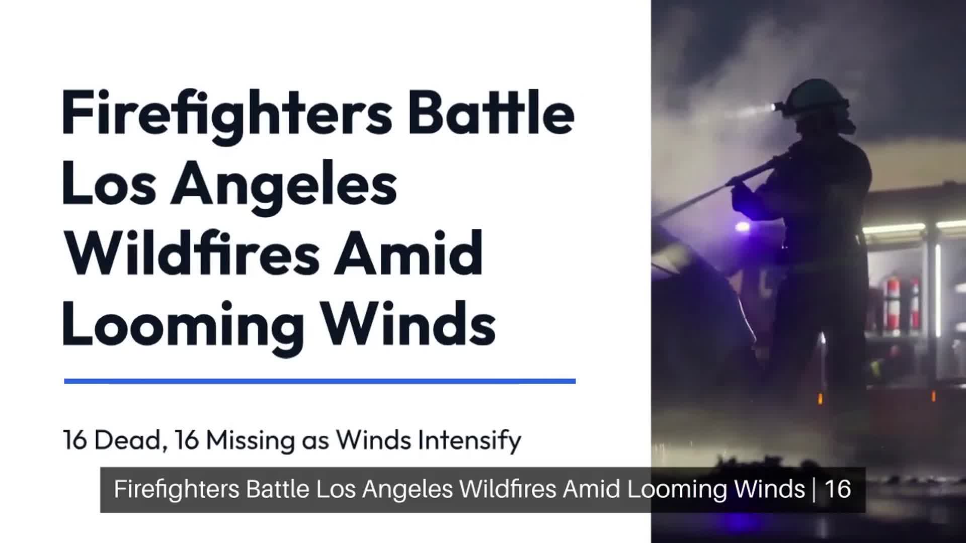 Firefighters Battle Los Angeles Wildfires Amid Looming Winds | 16 Dead, 16 Missing as Winds Intensify