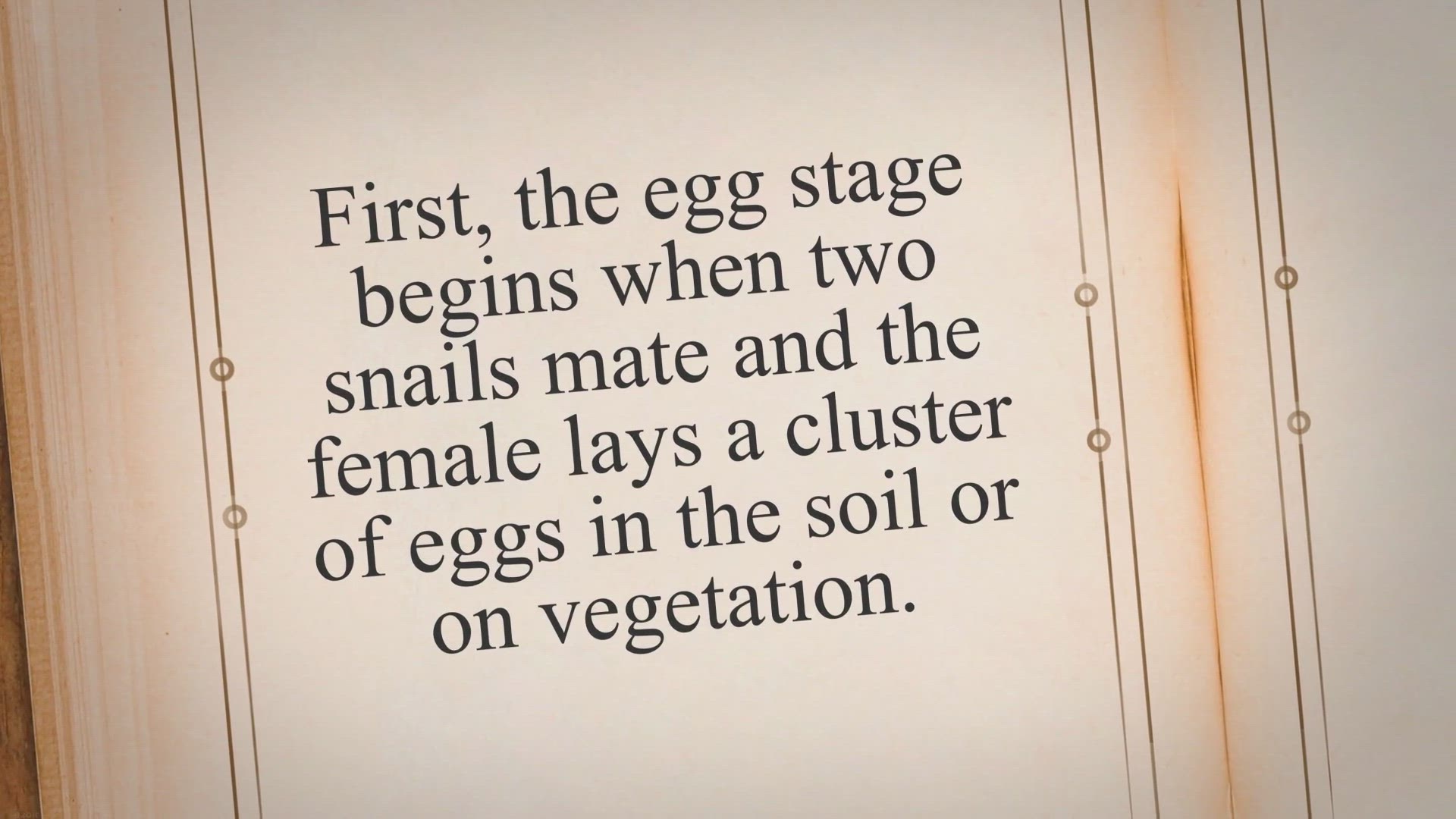 The life cycle of a common garden snail consists of four distinct stages. First, the egg stage begins when two snails mate and the female lays a cluster of eggs in the soil or on vegetation. The eggs hatch into young snails after about two to four weeks.