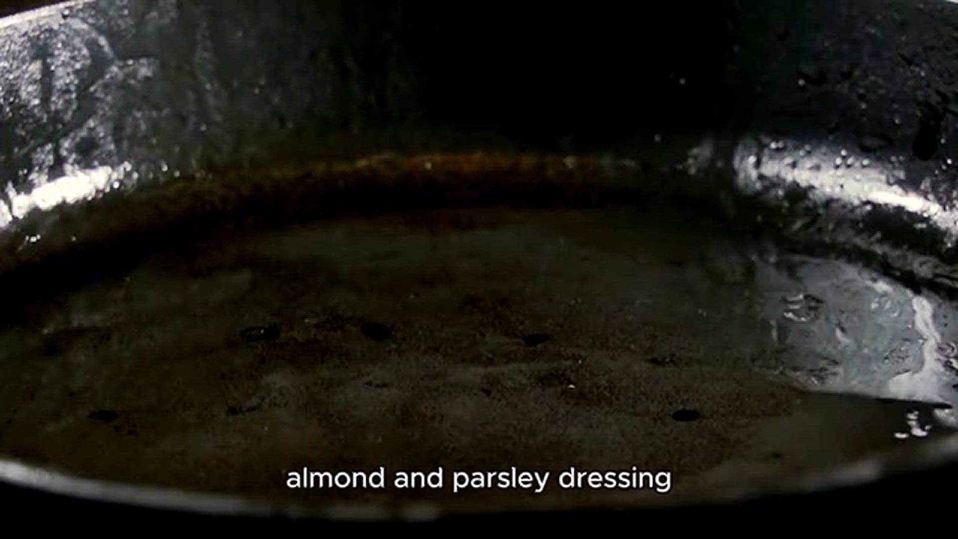 Roast peppers with ‘jammy’ eggs & almond & parsley dressing recipe