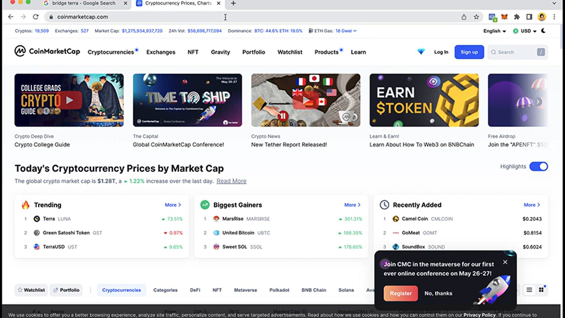 So, the first thing you want to do is to go into bridge.tera.money