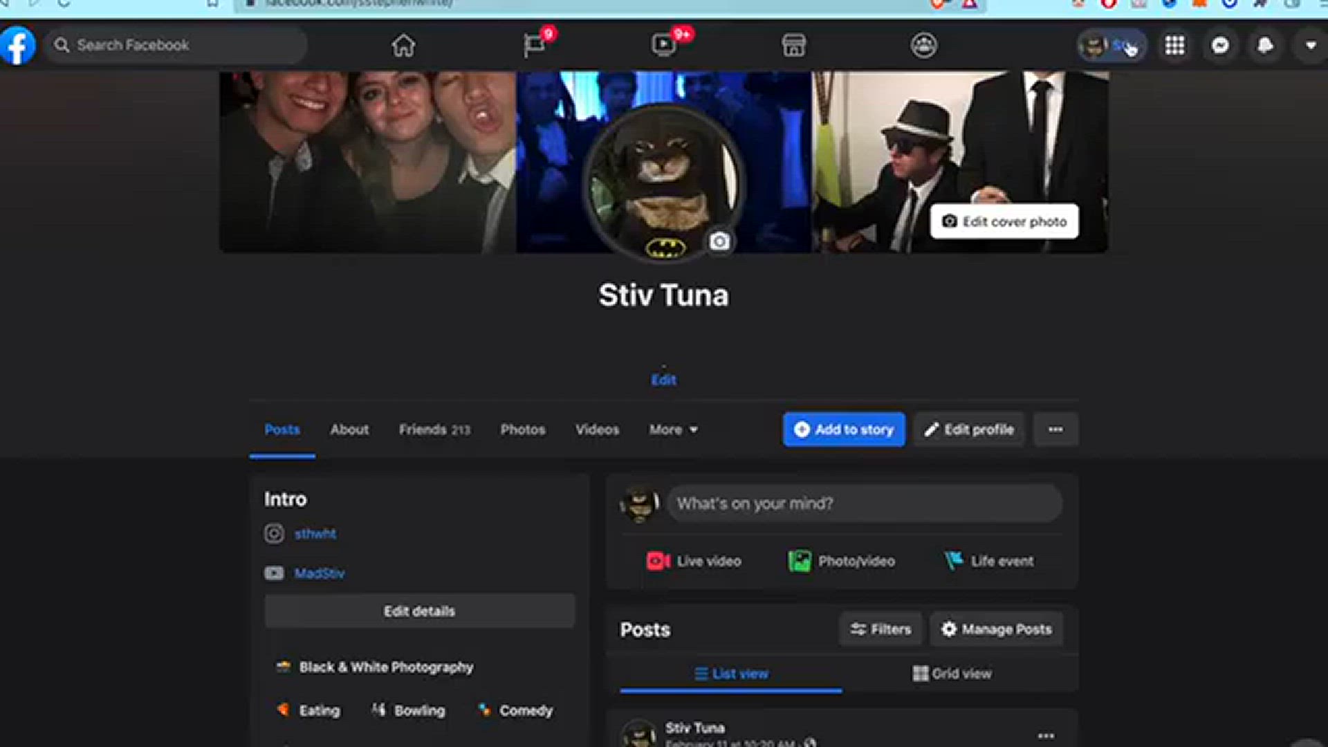 story here in Facebook you're going to click on your your profile pic and you have these three