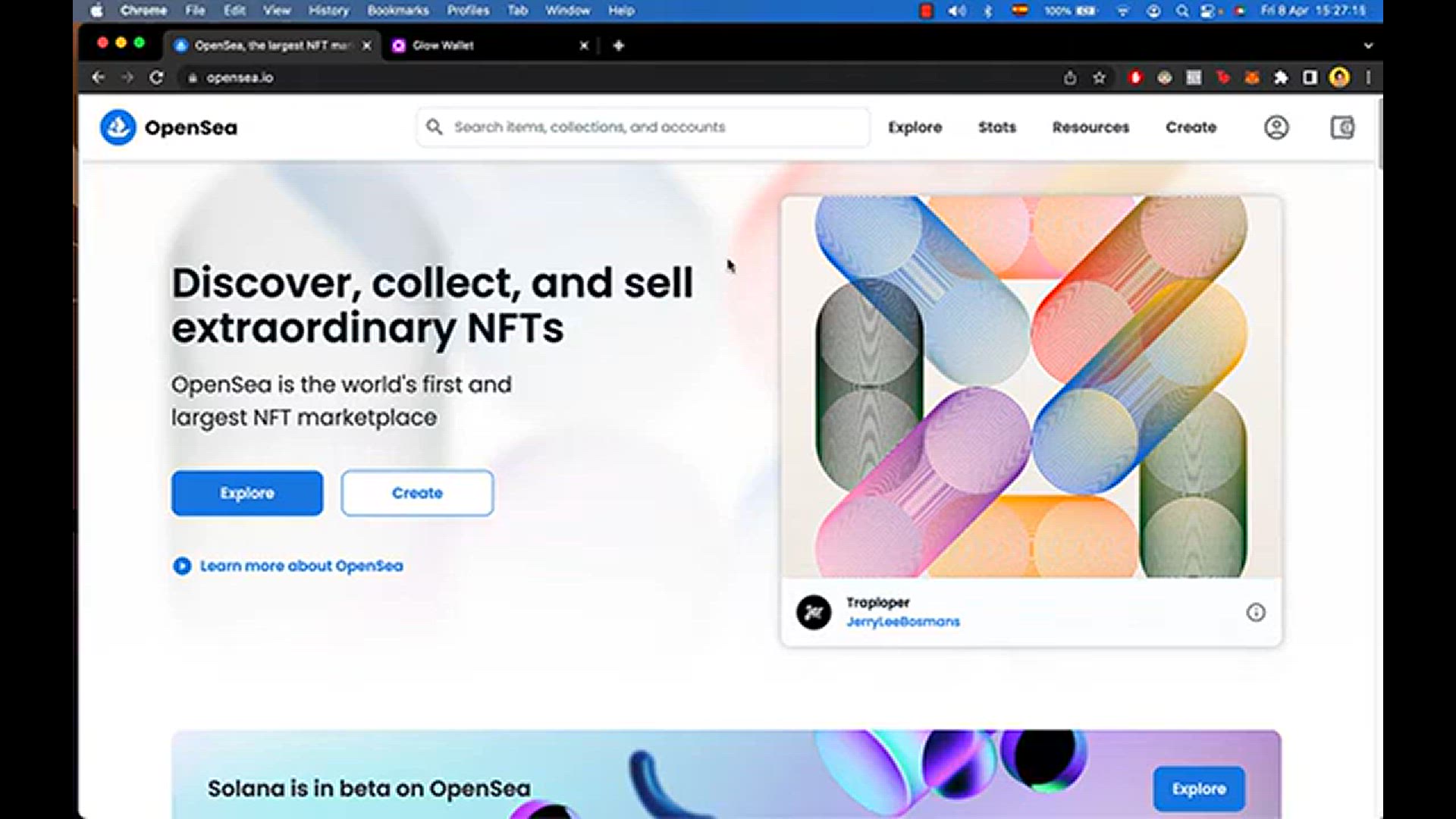 to connect your Glow wallet on OpenSea, right? So the first thing you want to do guys is to go into OpenSea.io