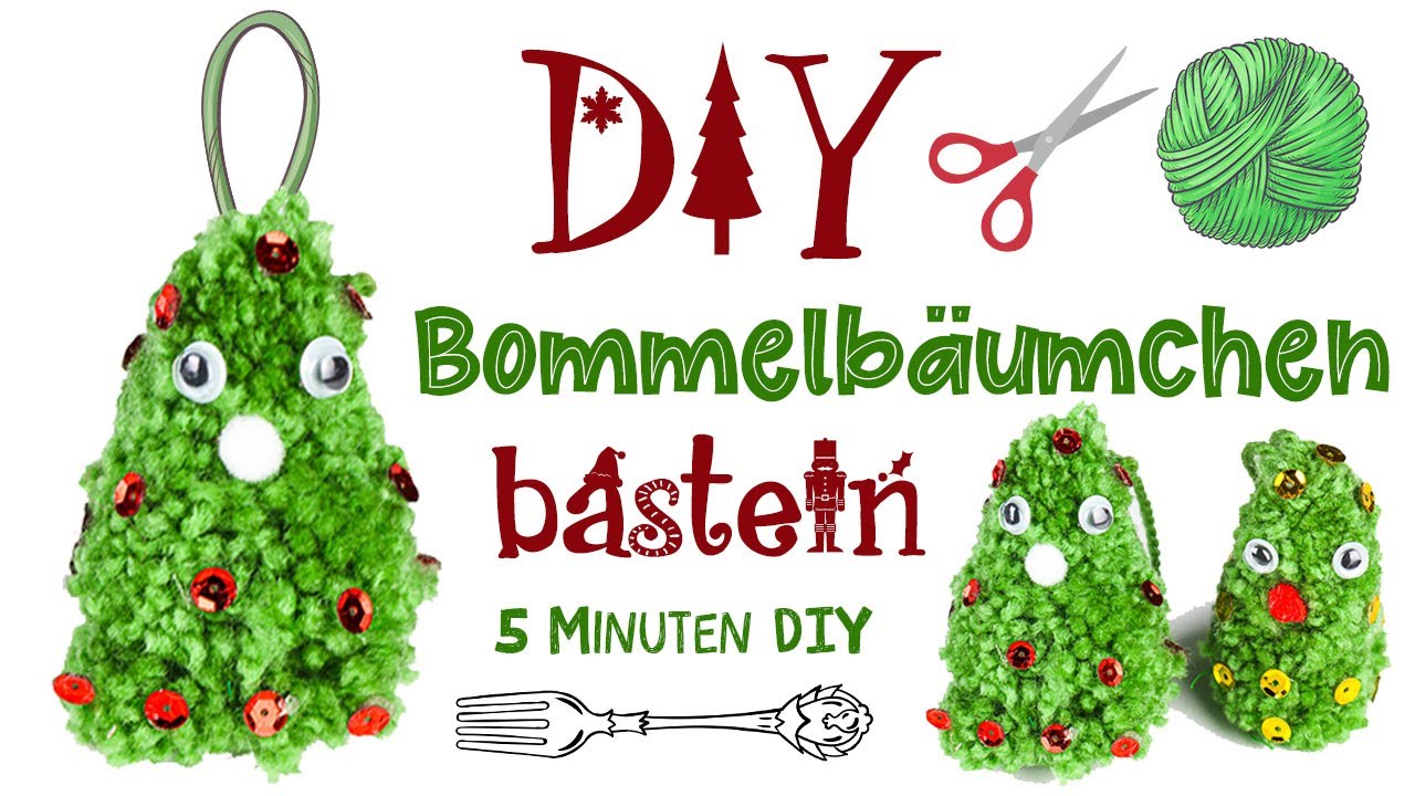 Bastelanleitung für Bommel-Bäume. Schnell und einfach ist der kleine Weihnachtsbaum aus Pompons gebastelt, ideal um mit Kindern zu basteln. Du benötigst nur ein wenig grüne Wolle, eine Gabel und Deko für das gebastelte Bäumchen. Die Pompons werden ganz einfach mit der Gabel aufgewickelt. Eine Anleitung hierfür findet ihr im Video.