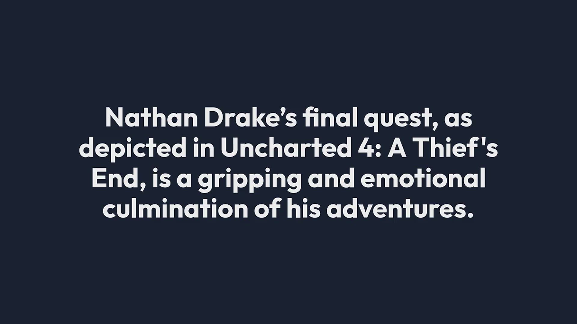 Join us as we dive into Nathan Drake’s Final Quest in Uncharted! In this video, we explore the epic conclusion to Nathan Drake’s legendary adventures. Discover how the final chapter unfolds as Drake faces his greatest challenges yet, unraveling mysteries and seeking out hidden treasures in a race against time. We’ll cover key story moments, thrilling action sequences, and the emotional highs and lows of this climactic journey. Whether you're a longtime fan of the series or new to Drake’s exploits, this video offers an in-depth look at the unforgettable finale of his adventures. Make sure to subscribe for more gaming content and detailed game analyses!