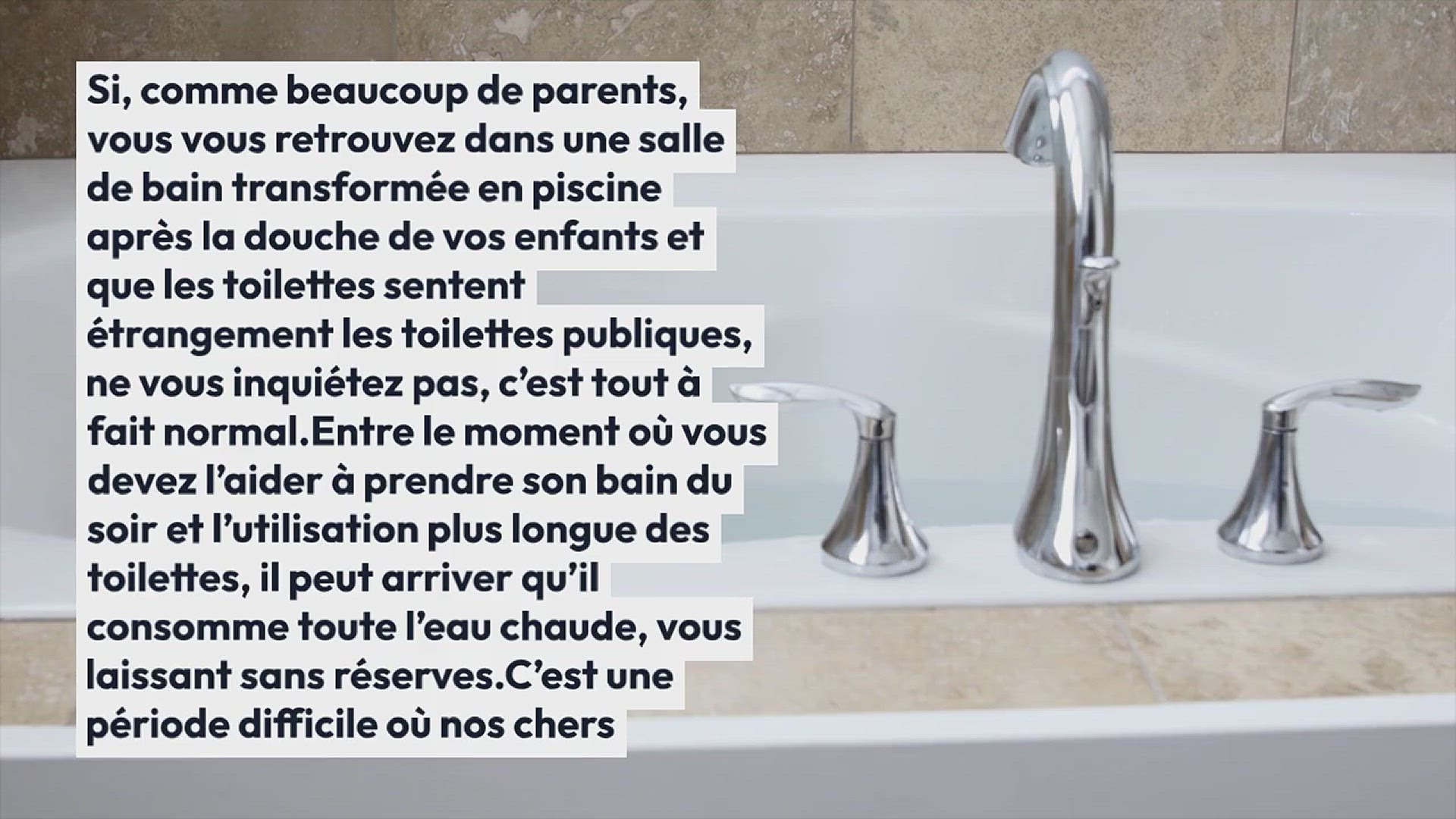 Si, comme beaucoup de parents, vous vous retrouvez dans une salle de bain transformée en piscine après la douche de vos enfants et que les toilettes sentent étrangement les toilettes publiques, ne vous inquiétez pas, c’est tout à fait normal. Entre le moment où vous devez l’aider à prendre son bain du soir et l’utilisation plus longue des toilettes, il peut arriver qu’il consomme toute l’eau chaude, vous laissant sans réserves. C’est une période difficile où nos chers enfants atteignent leur apogée dégoûtante !