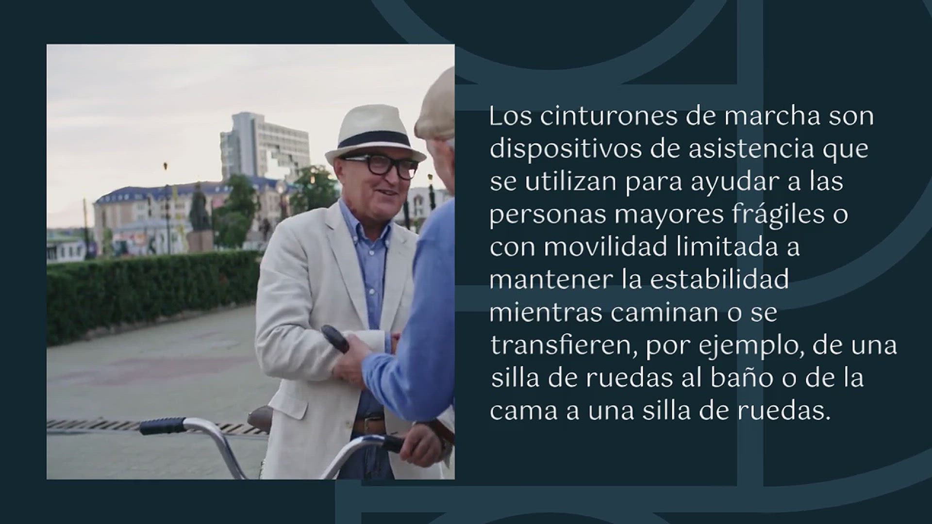 Los cinturones de marcha son dispositivos de asistencia que se utilizan para ayudar a las personas mayores frágiles o con movilidad limitada a mantener la estabilidad mientras caminan o se transfieren, por ejemplo, de una silla de ruedas al baño o de la cama a una silla de ruedas.