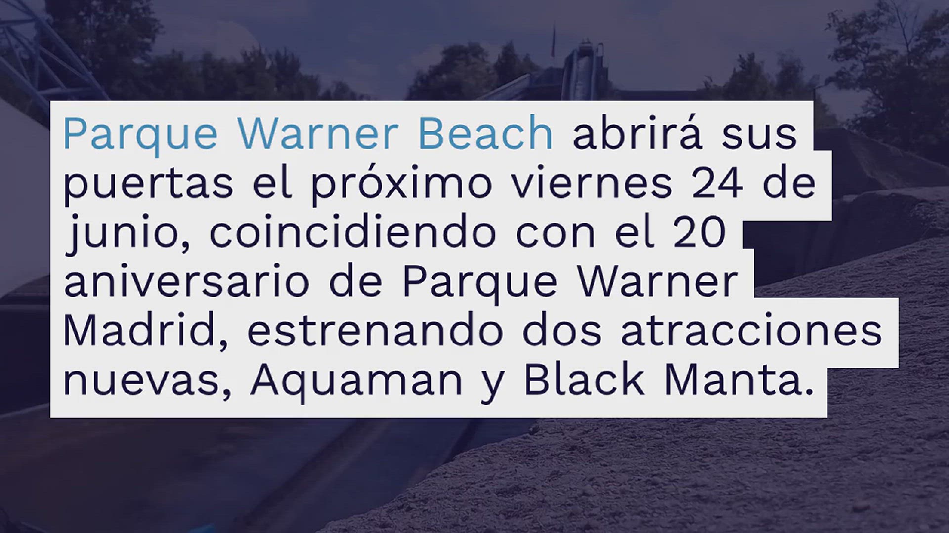 Parque Warner Beach abrirá sus puertas el próximo viernes 24 de junio, coincidiendo con el 20 aniversario de Parque Warner Madrid, estrenando dos atracciones nuevas, Aquaman y Black Manta. Se trata de unas espectaculares atracciones que ofrecen adrenalina y emoción en forma de toboganes increíbles y especialmente dirigidas al público más joven.