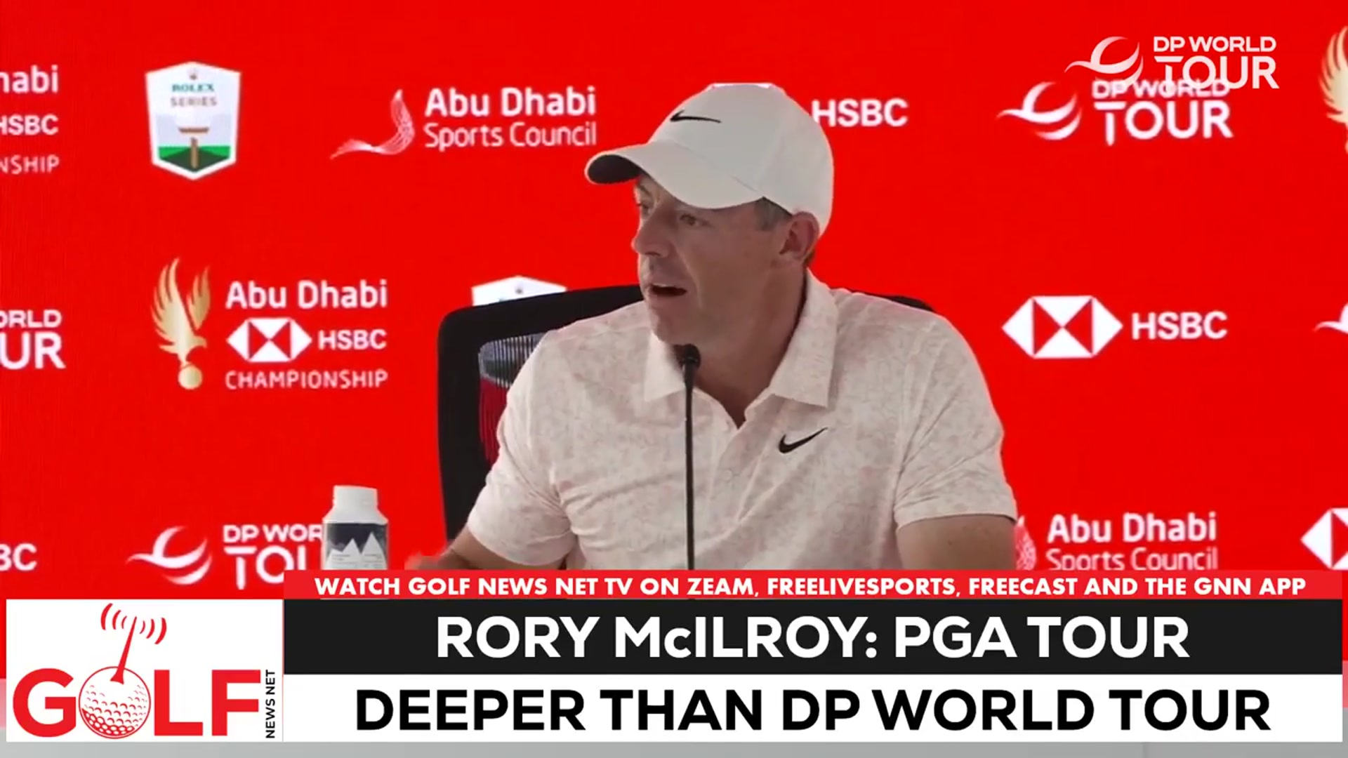 Rory McIlroy said at the Abu Dhabi HSBC Championship on the DP World Tour that the PGA Tour has deeper fields in their tournaments but the top of the European players is as good as any American event.