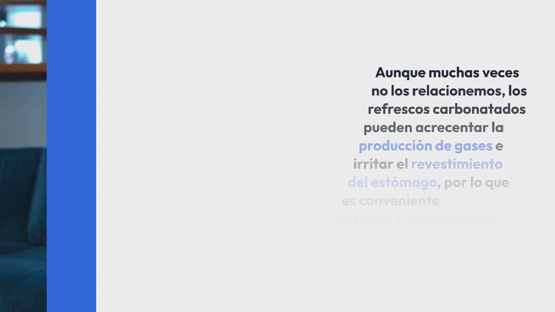 Aunque muchas veces no los relacionemos, los refrescos carbonatados pueden acrecentar la producción de gases e irritar el revestimiento del estómago, por lo que es conveniente evitarlos si presentamos problemas gástricos