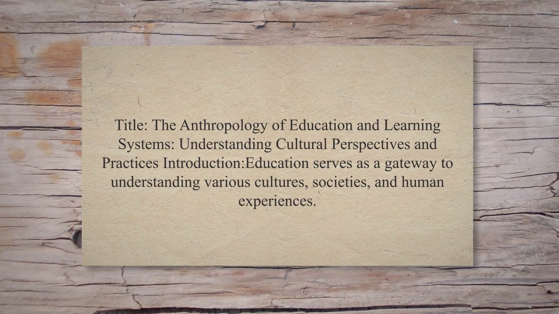 Title: The Anthropology of Education and Learning Systems: Understanding Cultural Perspectives and Practices