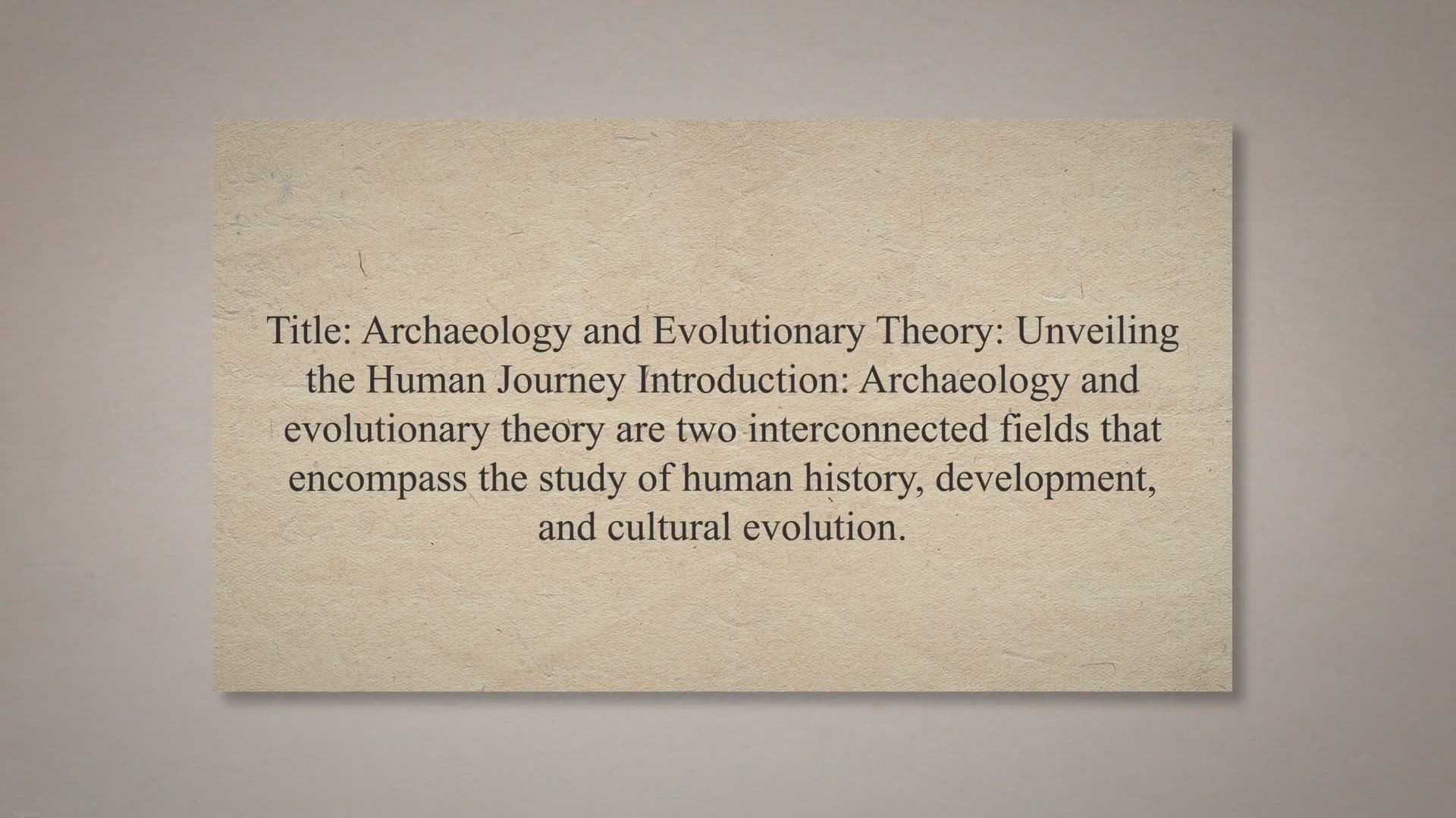 Title: Archaeology and Evolutionary Theory: Unveiling the Human Journey