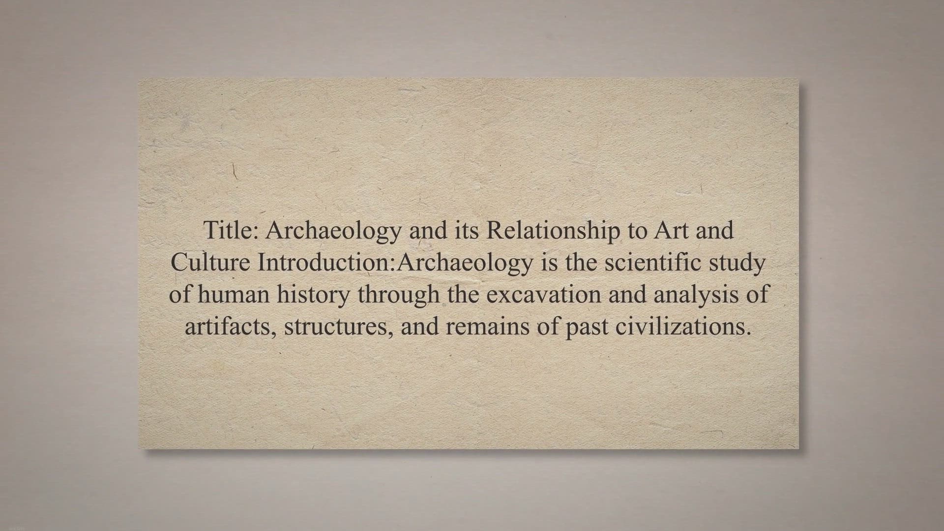 Archaeology and its relation to art and culture