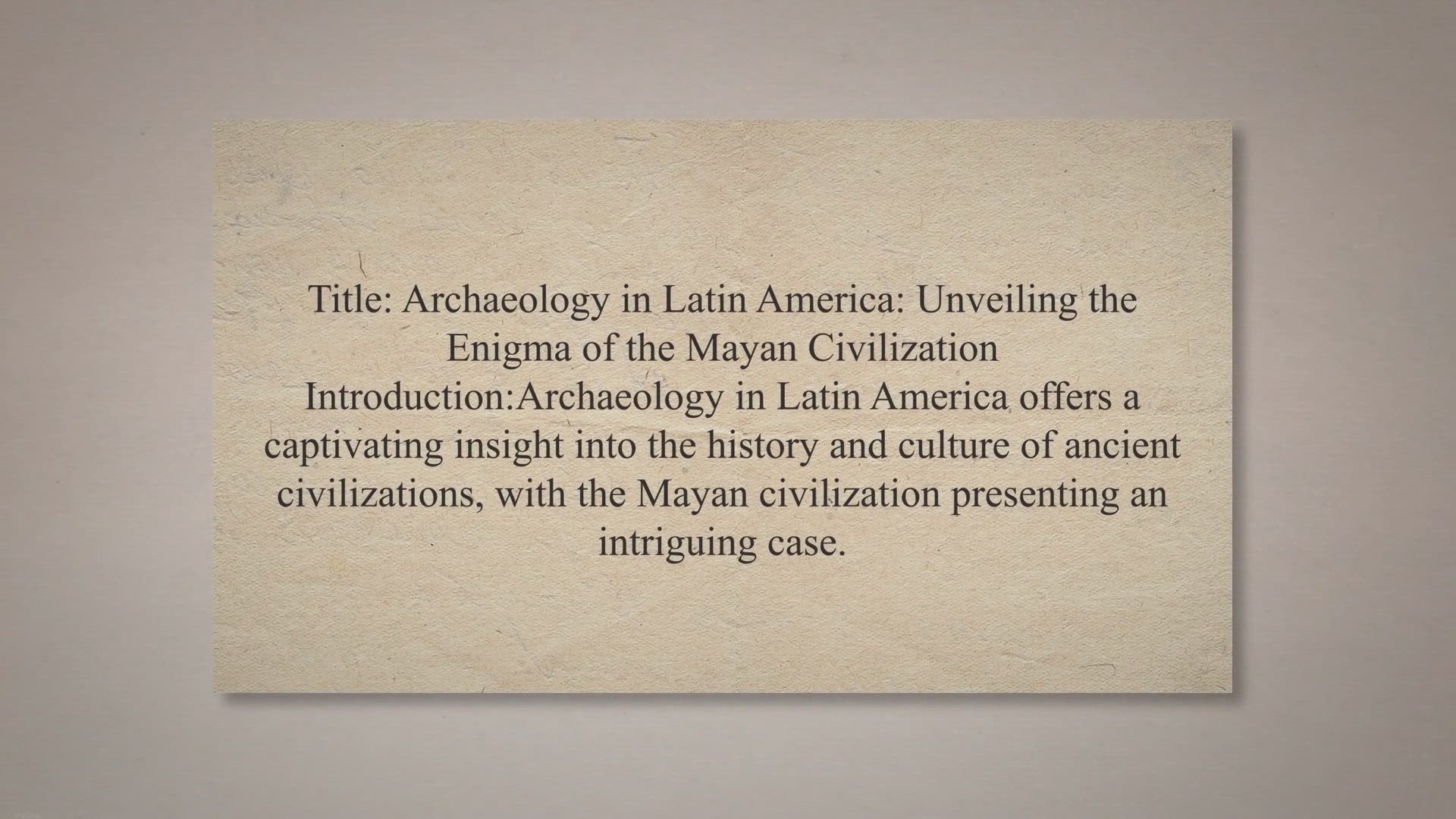 Title: Archaeology in Latin America: Unveiling the Enigma of the Mayan Civilization