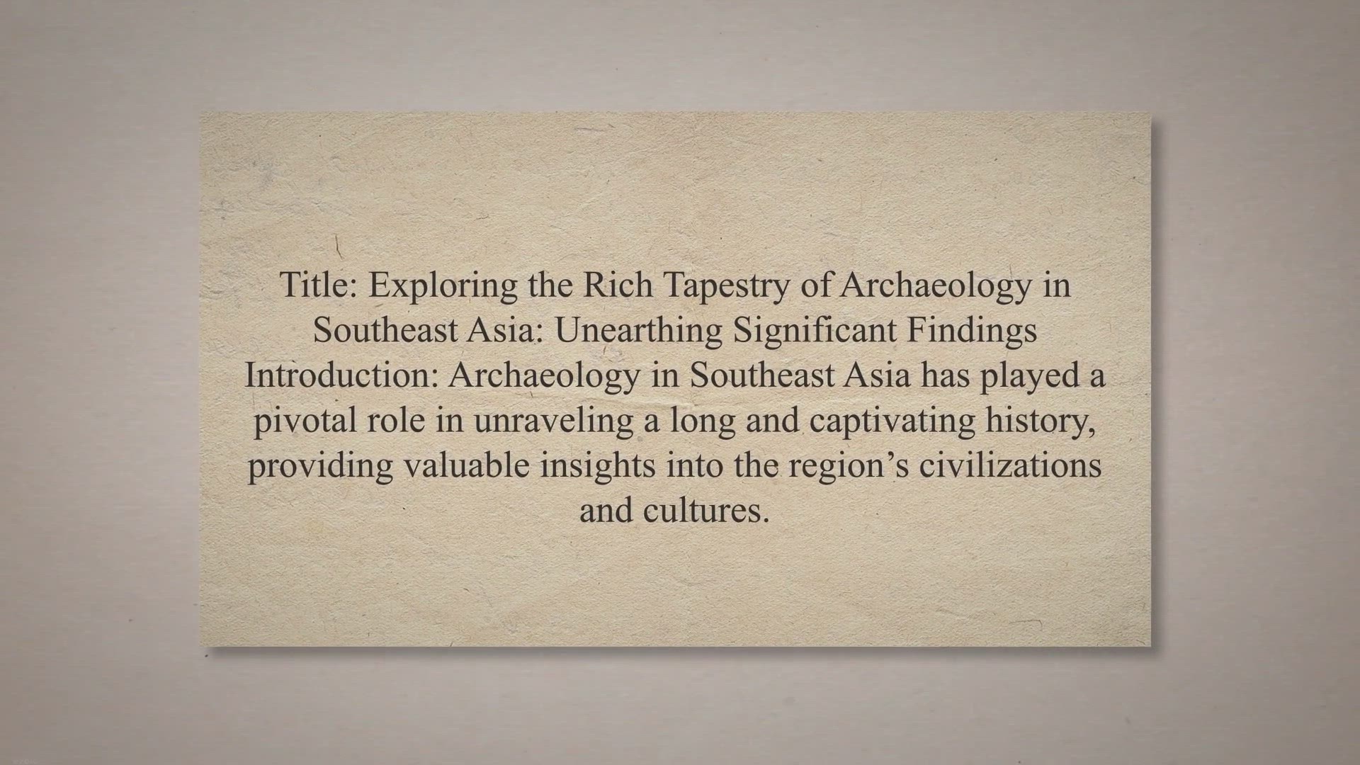 Title: Exploring the Rich Tapestry of Archaeology in Southeast Asia: Unearthing Significant Findings