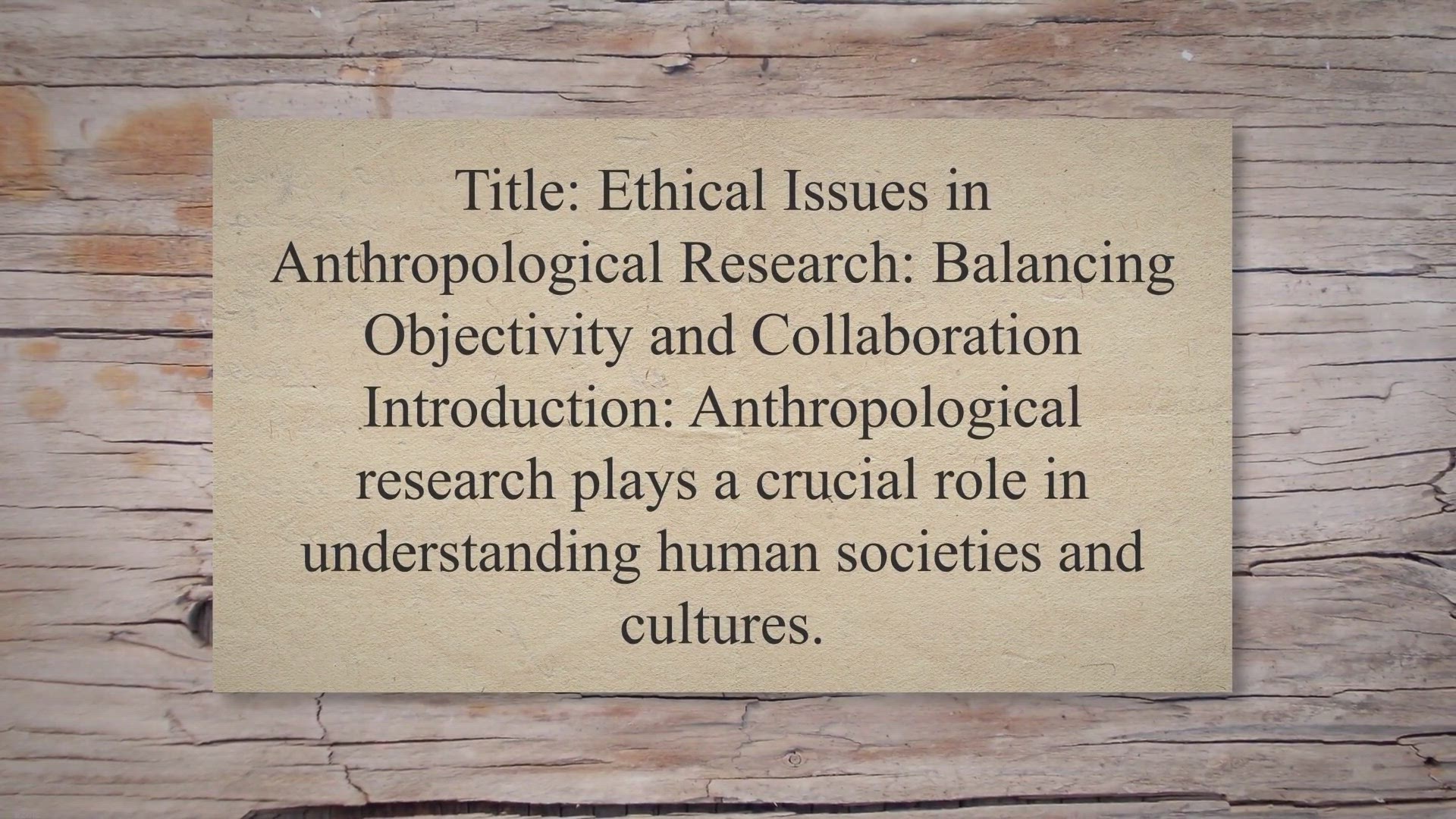 Title: Ethical Issues in Anthropological Research: Balancing Objectivity and Collaboration