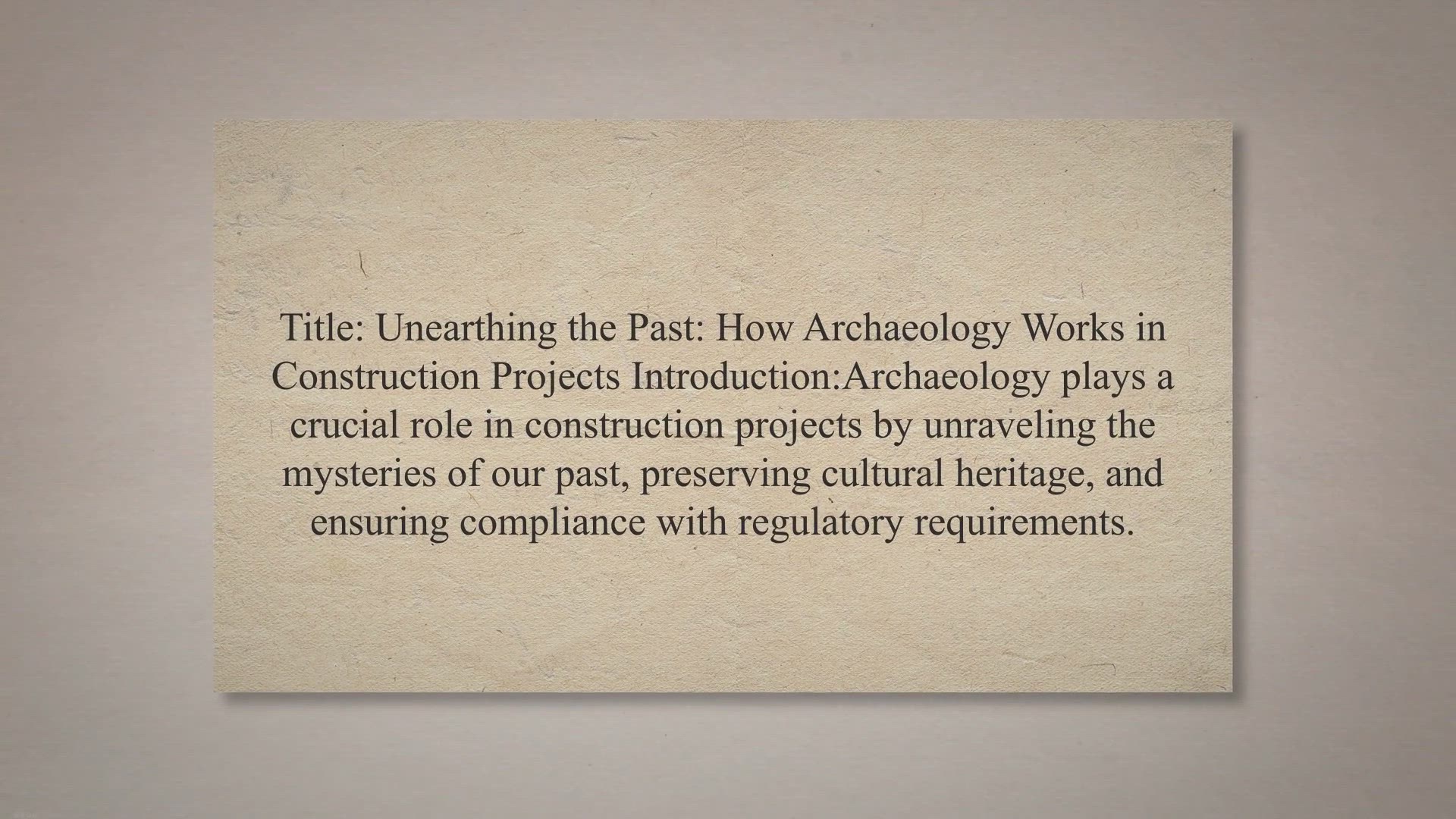 Title: Unearthing the Past: How Archaeology Works in Construction Projects