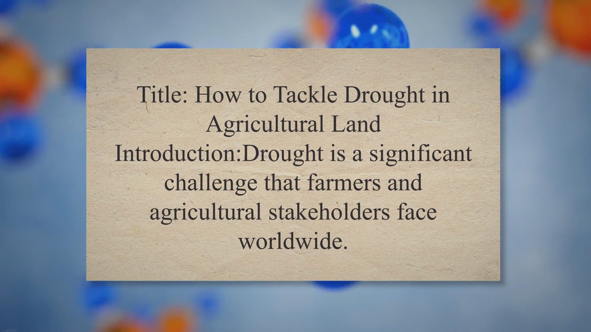 Title: How to Tackle Drought in Agricultural Land