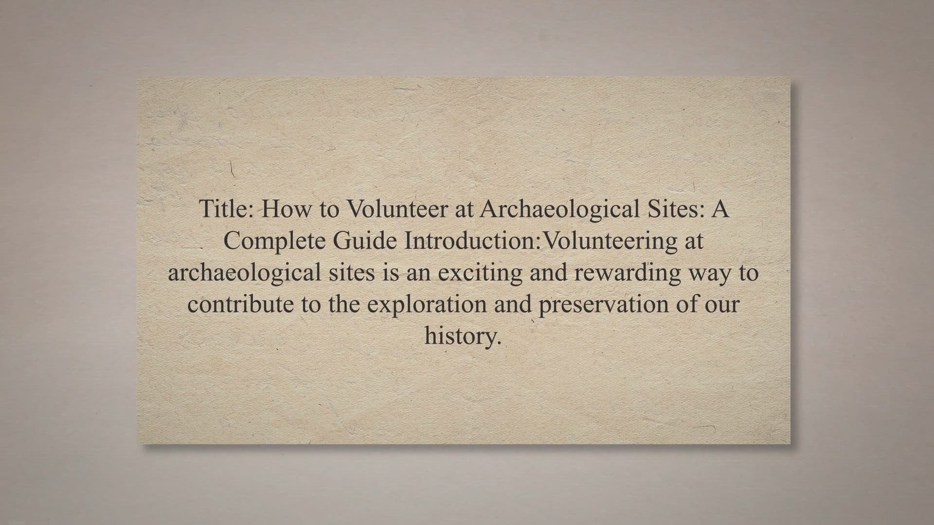 Title: How to Volunteer at Archaeological Sites: A Complete Guide