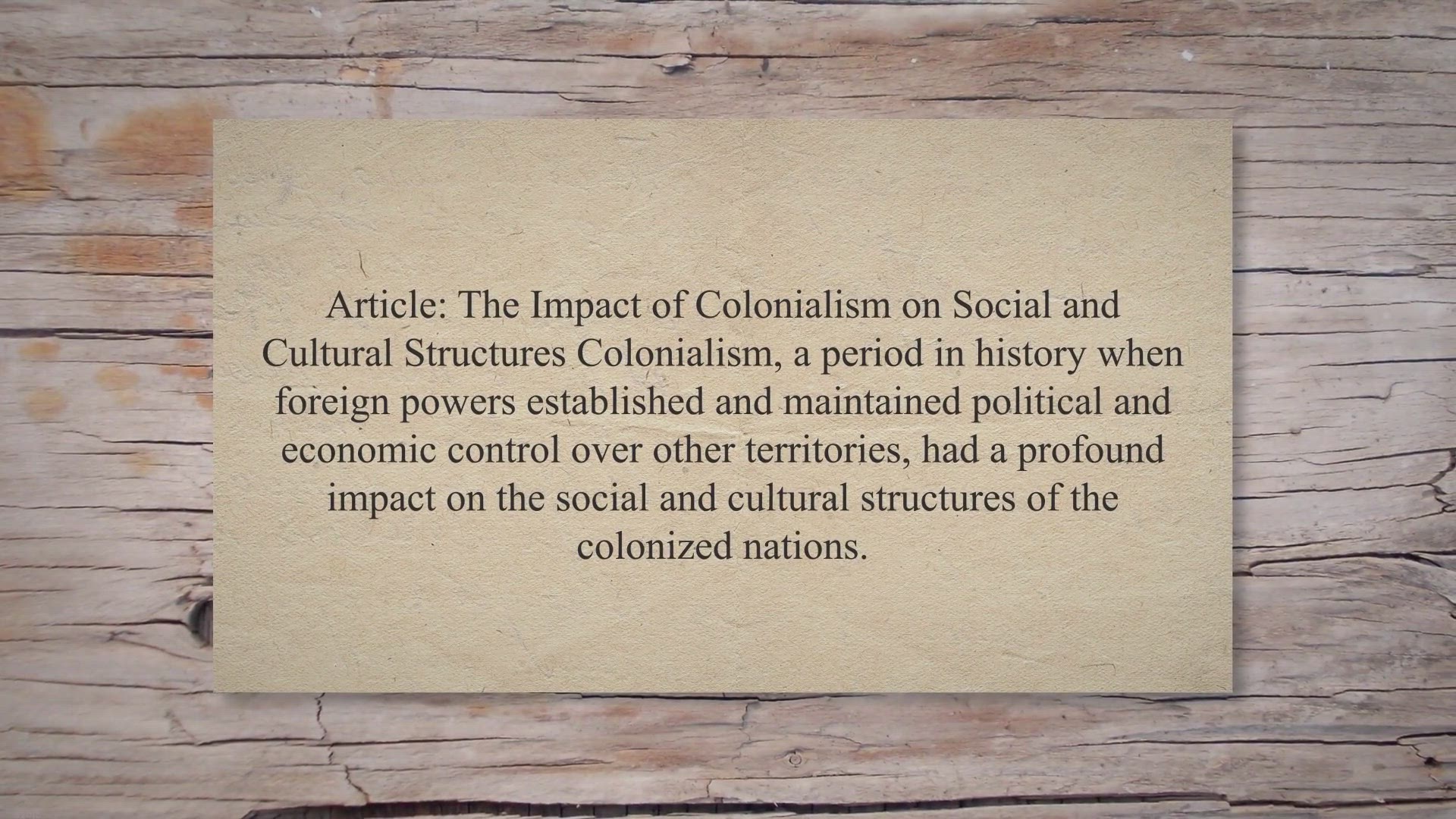 Article: The Impact of Colonialism on Social and Cultural Structures