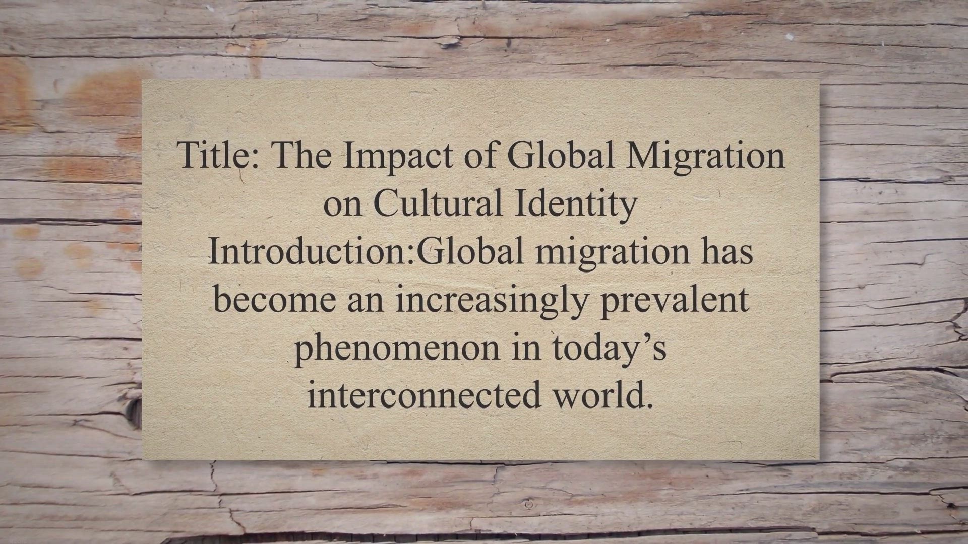 Title: The Impact of Global Migration on Cultural Identity