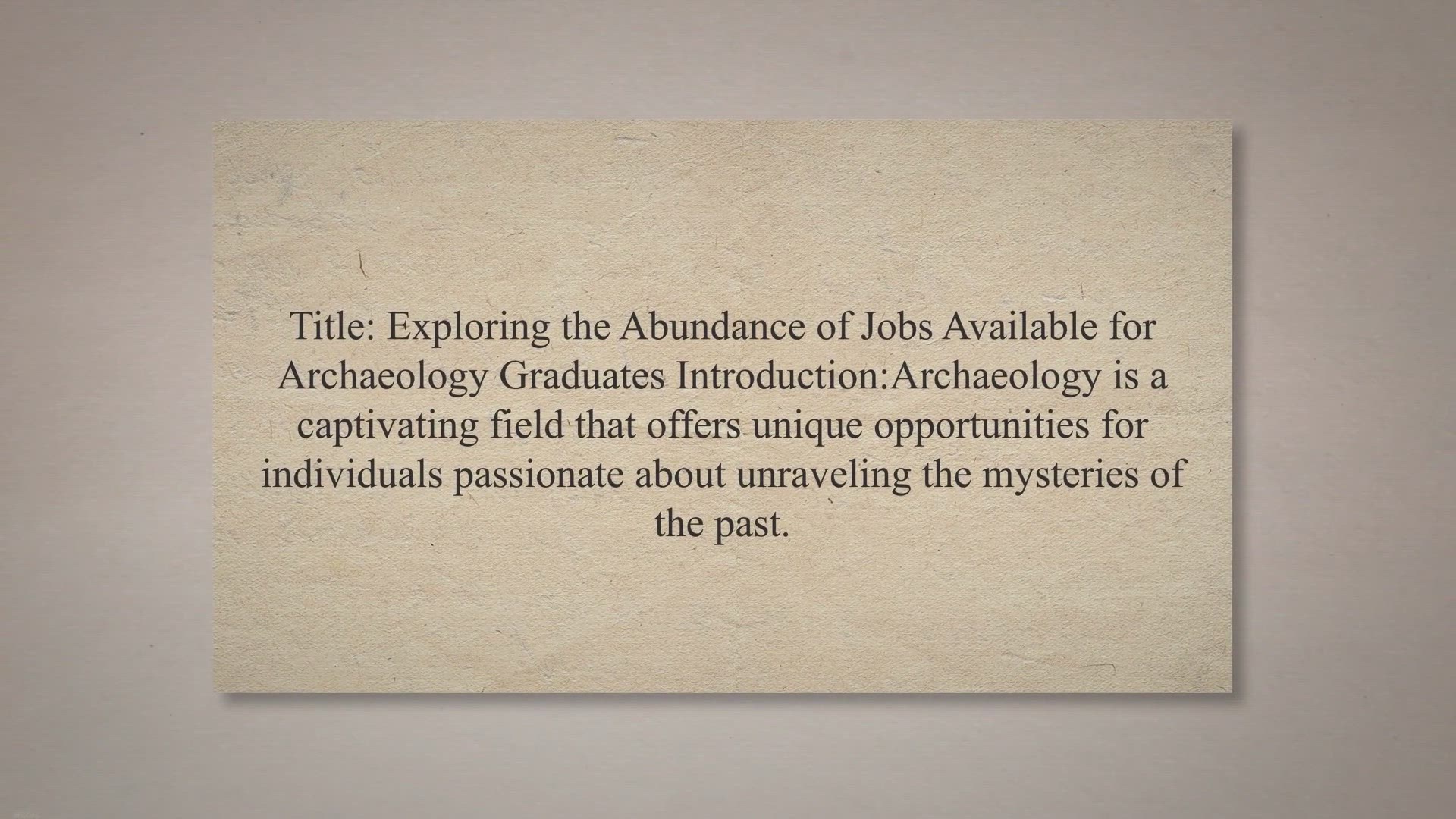 Title: Exploring the Abundance of Jobs Available for Archaeology Graduates