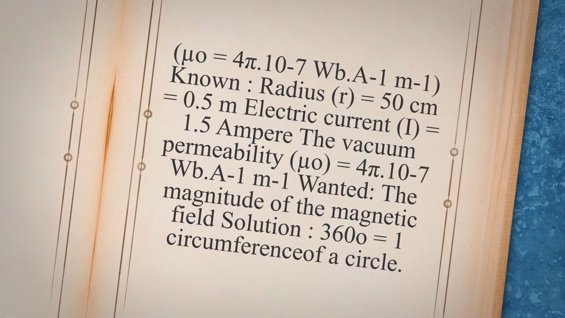 1. Based on the figure below, if the radius of the curvature of the wire is 50 cm, determine the magnitude of the magnetic field at the center of curvature
