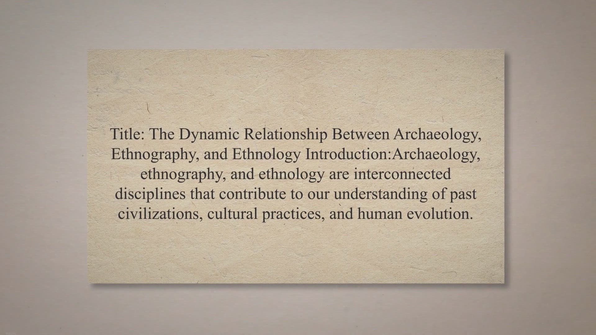 Title: The Dynamic Relationship Between Archaeology, Ethnography, and Ethnology