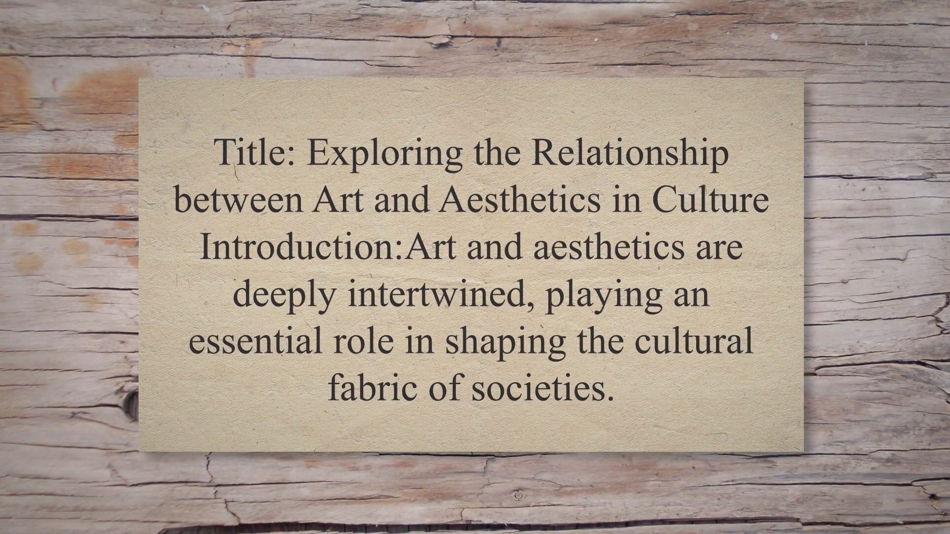 Title: Exploring the Relationship between Art and Aesthetics in Culture