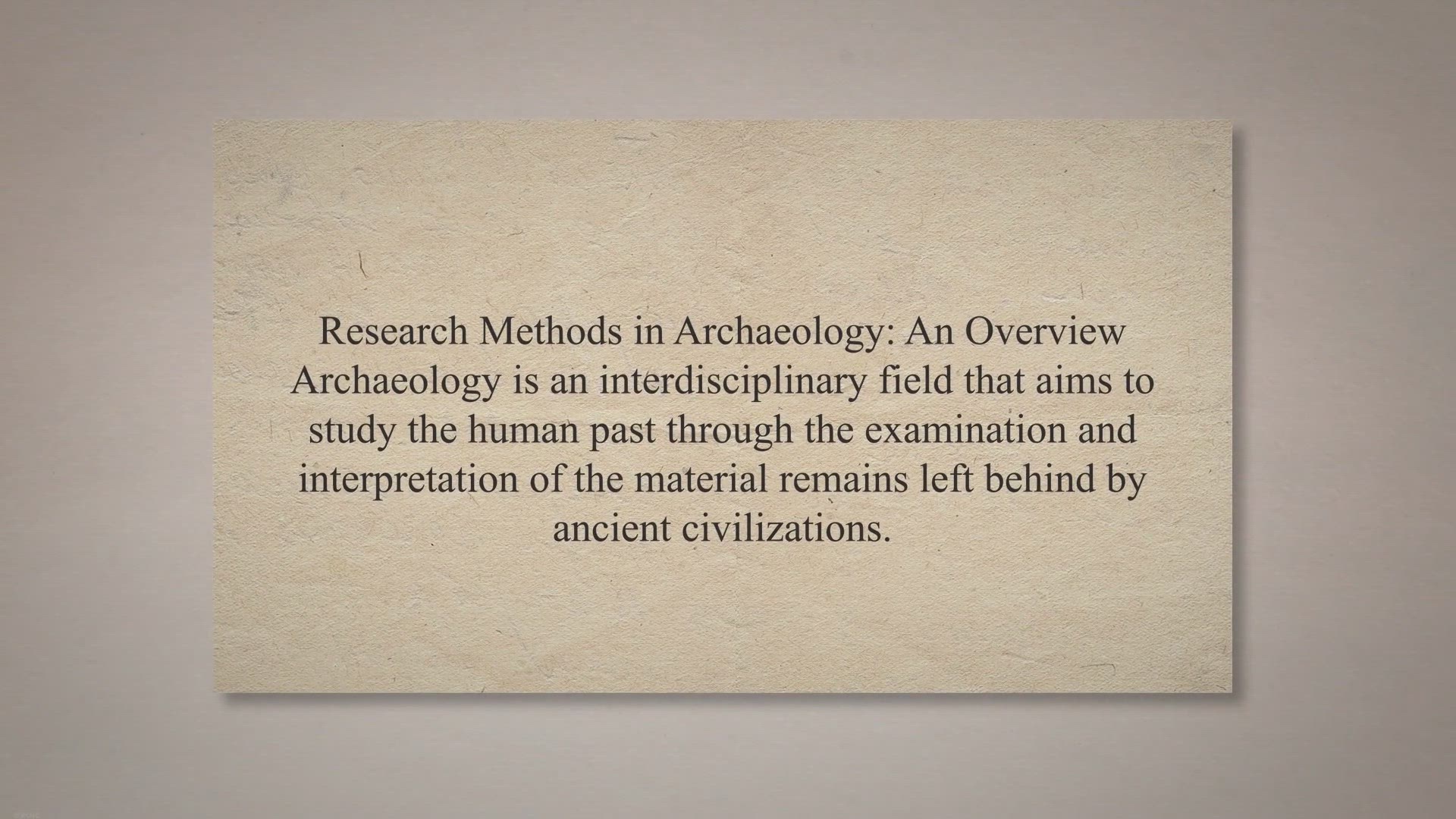 Research Methods in Archaeology: An Overview
